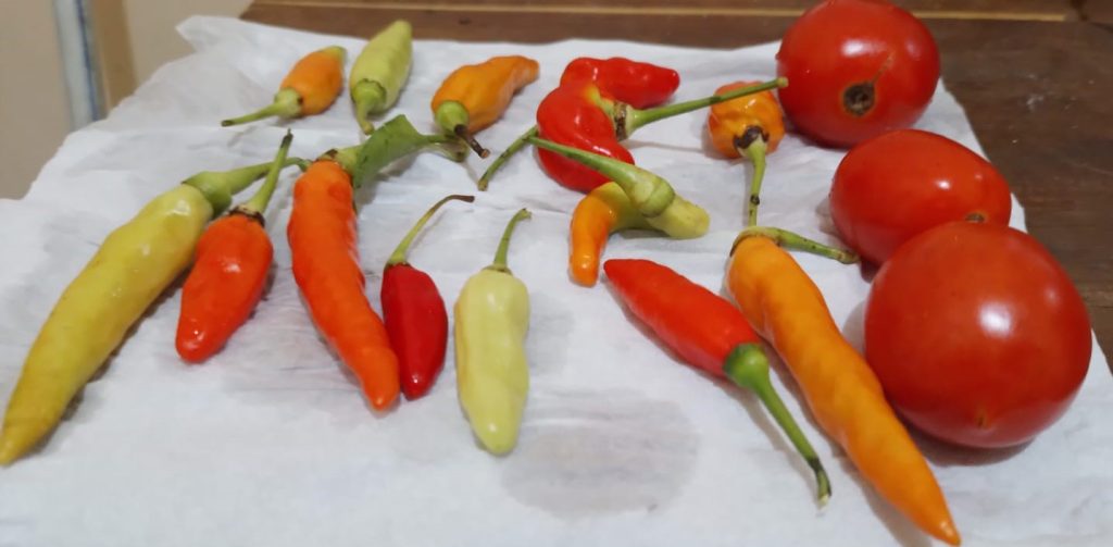 Terutama tanaman tomat dan cabe masih berbuah dengan baik dan menghasilkan buat yang sehat. Meskipun dibiarka tumbuh bersama tanaman lain disekitarya.